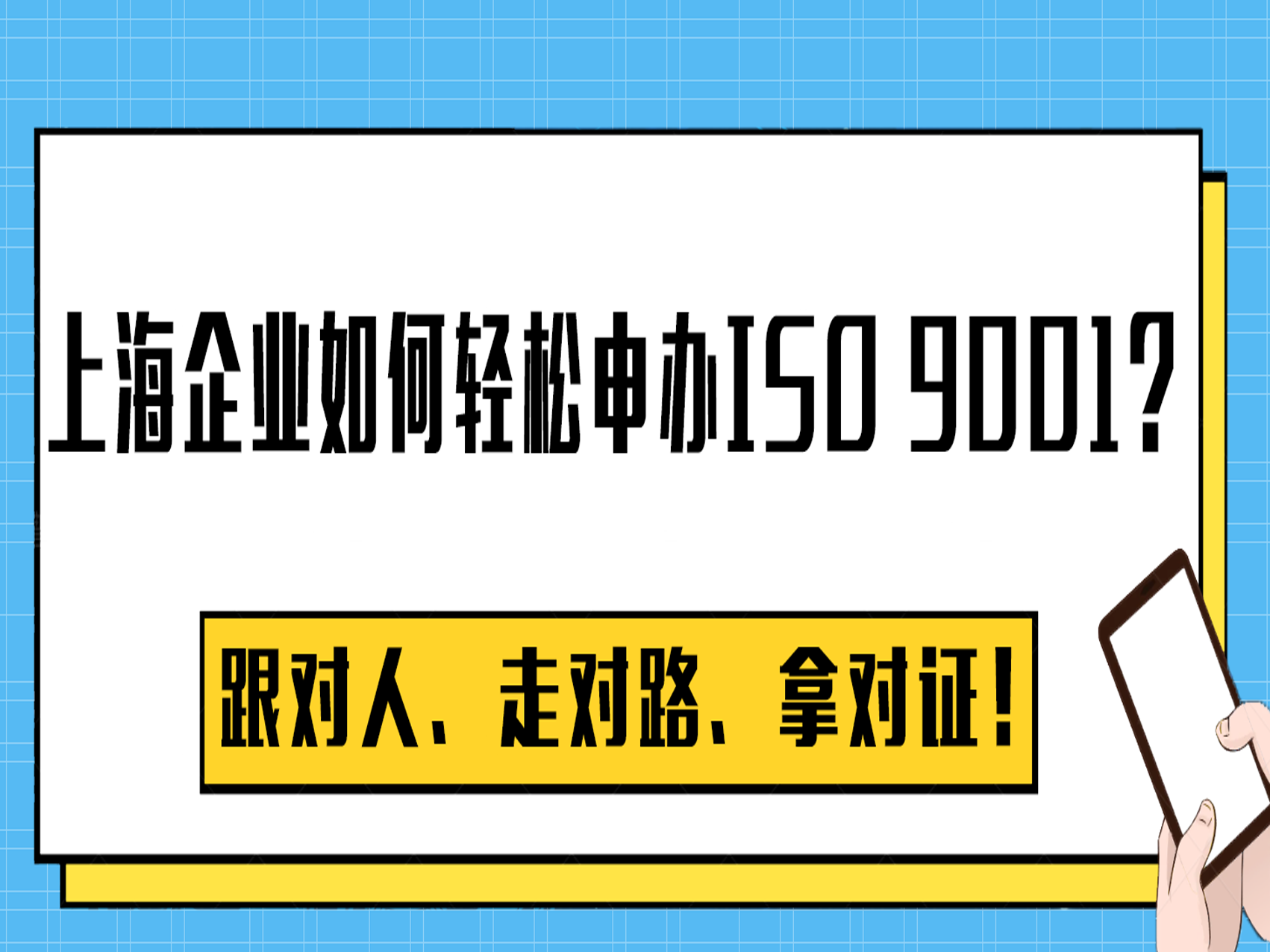 在激烈的市場競爭中,企業(yè)如何提升自身品質(zhì),脫穎而出?ISO 9001質(zhì)量管理體系認(rèn)證成為眾多企業(yè)的首選。本文將為您揭秘上海企業(yè)如何輕松申辦ISO 9001,助您跟對人、走對路、拿對證!