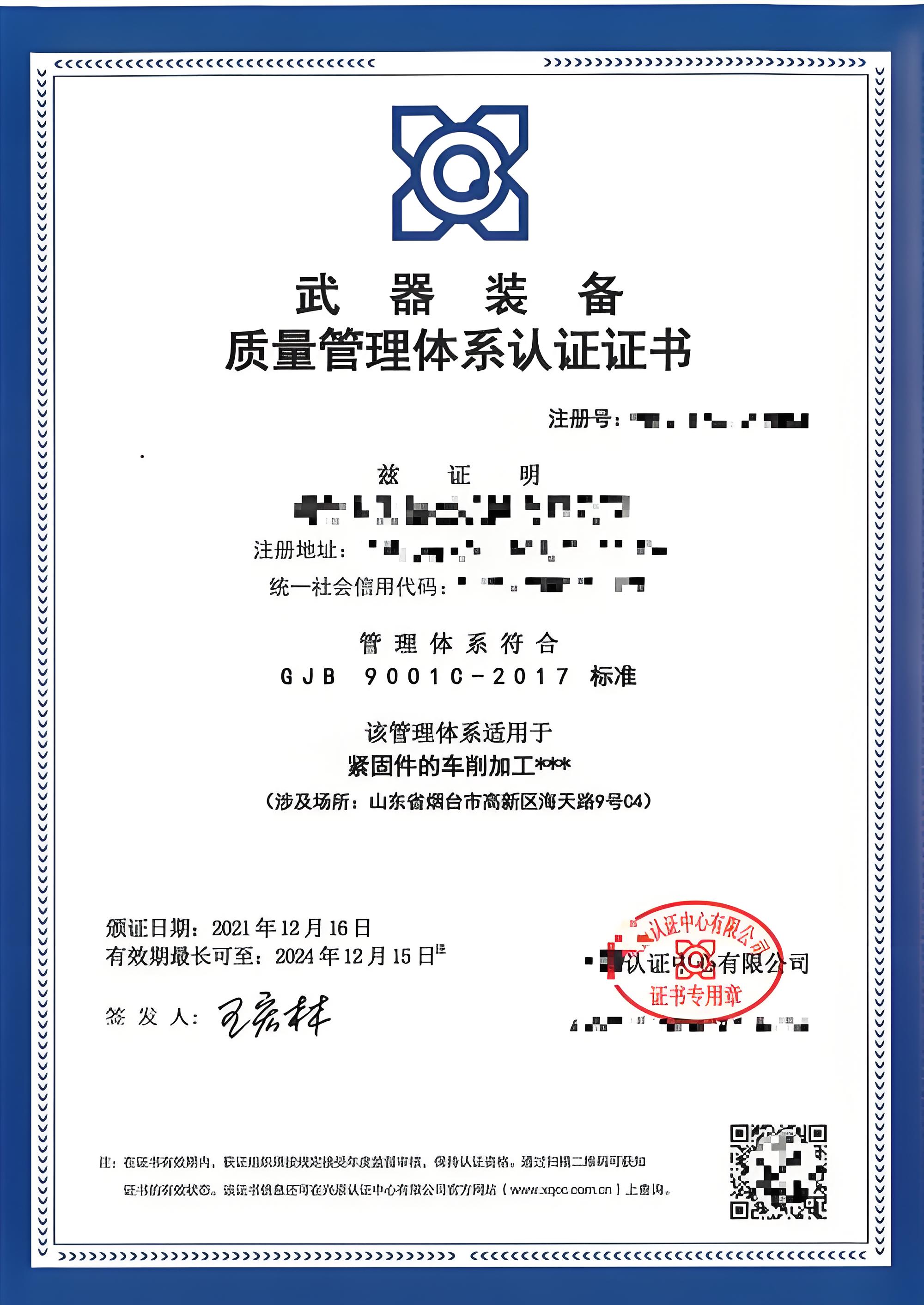 認證決定與發證:審核通過后,頒發GJB9001C證書(有效期3年);