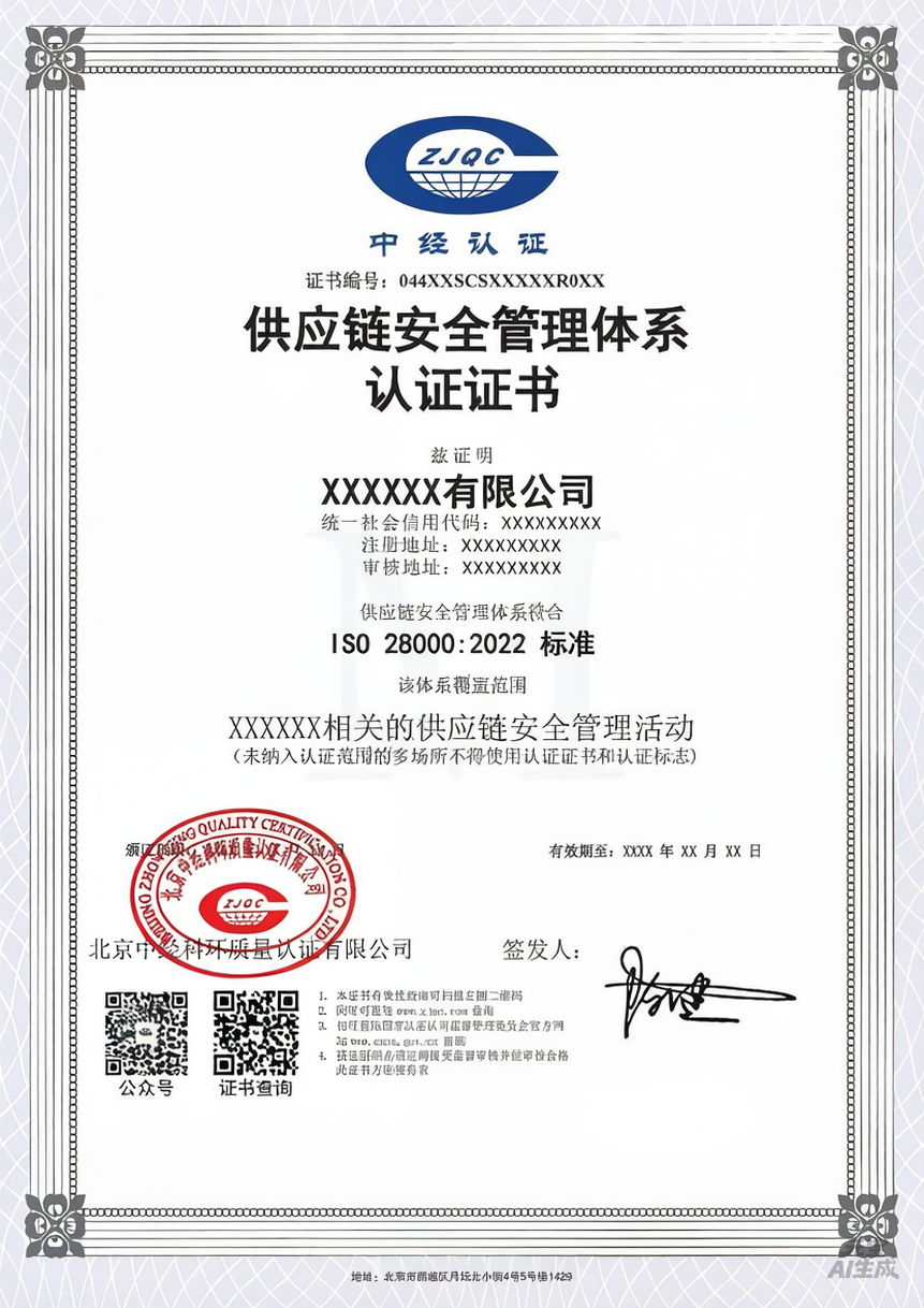 ISO28000認證是非強制性管理體系認證,由第三方認證機構依據ISO28000供應鏈安全管理體系對符合標準的企業頒發認證證書。